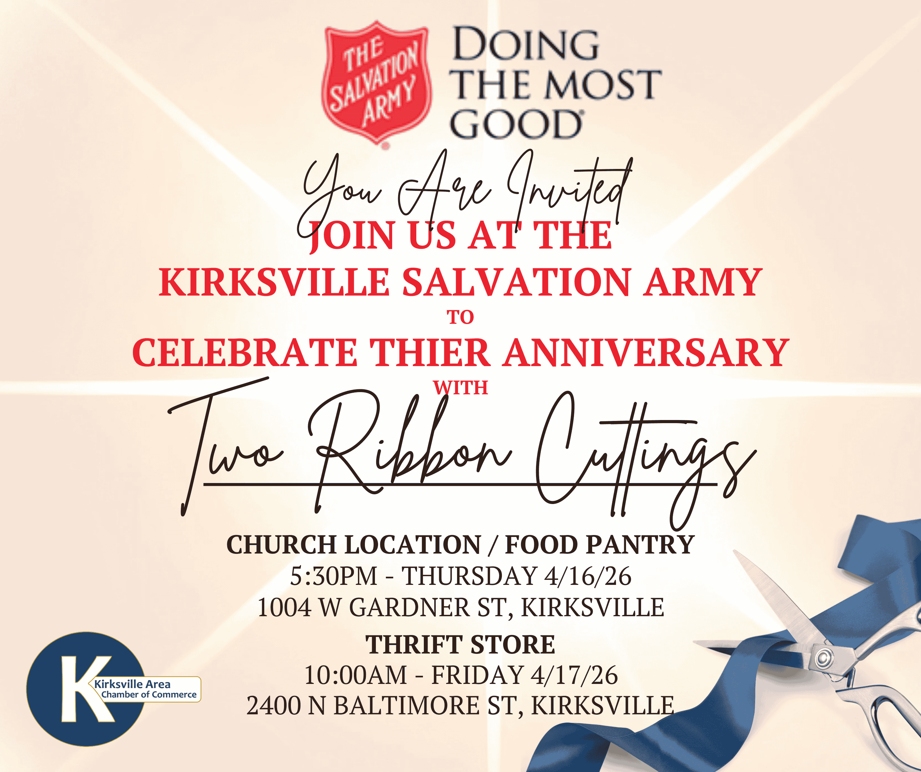 | 4/20/2026 | Sign up for Kirksville Community Chorus! Rehearsals begin Jan 26th. The concert is scheduled for May 4th. more info... |